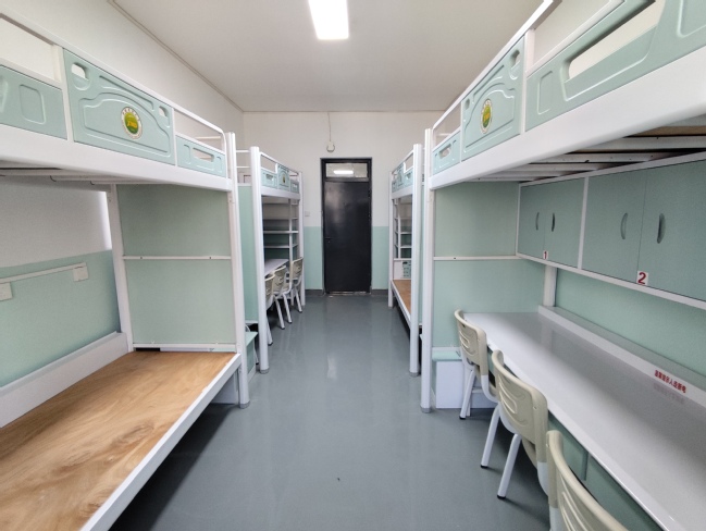 中心聚焦学生住宿体验,开学前完成2号、8号公寓楼墙面粉刷、设备换新及床具更换工作;组织维修人员开展全面安全隐患排查,重点检查宿舍电路、消防设施等部位,及时整改老化线路和损坏设施;在各公寓楼楼道、消防通道和宿舍门口等区域张贴消防警示标志和安全用电须知,明确禁止使用大功率电器等规定;在宿舍大门、走廊拐角、管道等区域设置防撞提醒,进一步降低风险隐患。